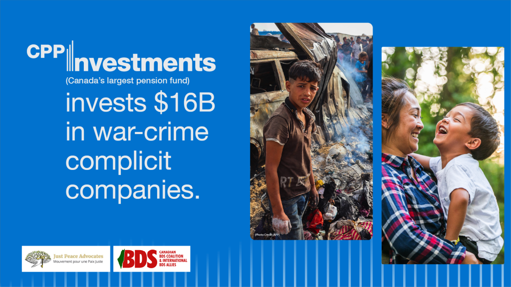 Eight months into the current genocide, the Canada Pension Plan has increased its investment in war crimes, and genocide, to over $16 billion. Ask CPPIB to take immediate steps to divest from the companies supporting genocide