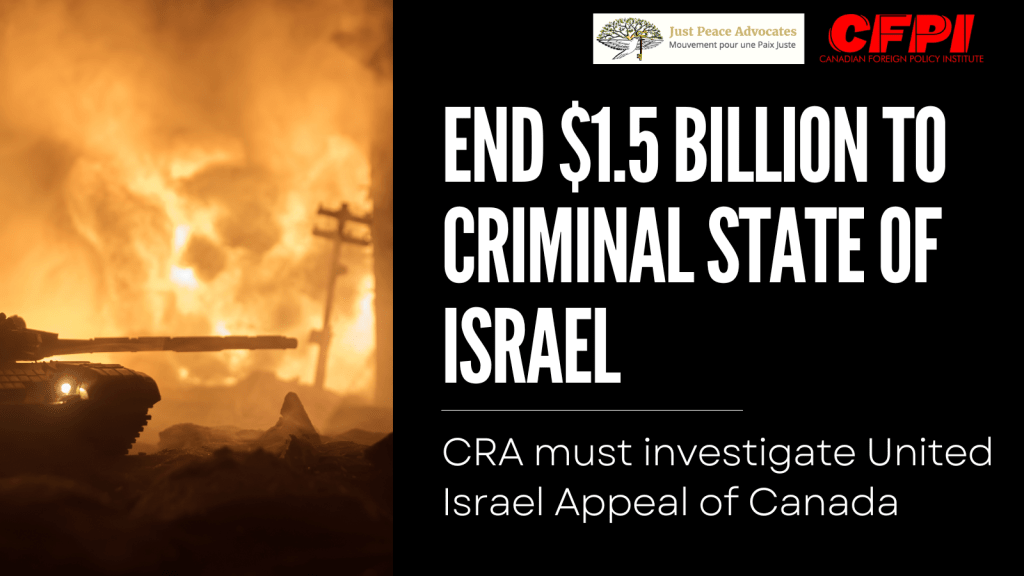 A detailed formal complaint was submitted to the Canada Revenue Agency to investigate whether United Israel Appeal of Canada (UIA) has violated the rules for registered charities. Since 1991 UIA has raised over $1.5 billion. The complaint details the organization’s opaque finances and questions whether UIA is violating CRA rules by acting as a conduit to send funds to unidentified entities overseas. The complaint also details UIA funding for groups assisting the Israeli military and illegal settlements, which is contrary to CRA regulations.