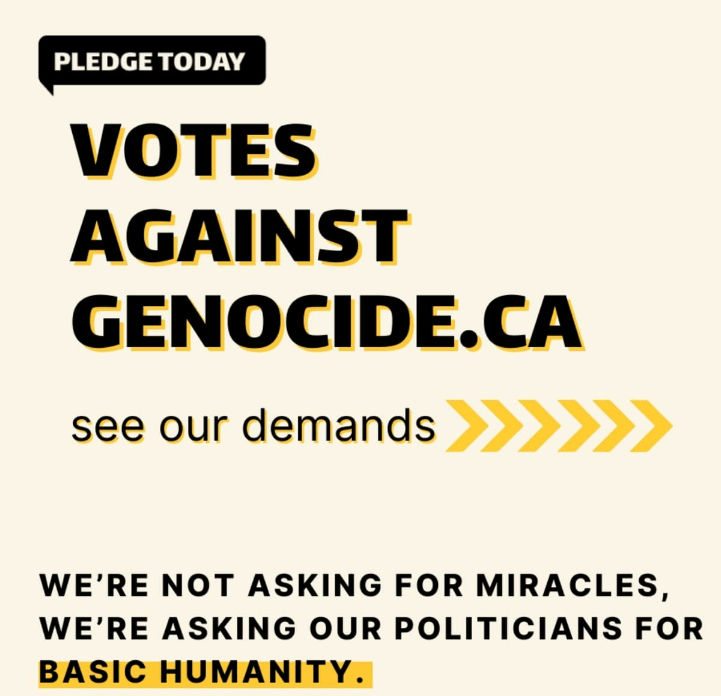 Tired of MPs ignoring us? Exhausted by Canadian political parties’ complicity in genocide? It’s time to make our voices heard. Together, we’re uniting around 8 clear demands. If they refuse to act, we’ll make it count at the ballot box. 🗳️
